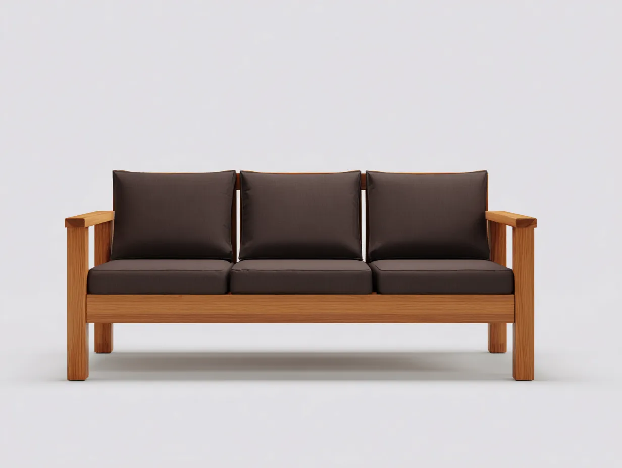Sofá de jardín de 3 plazas con brazos rectos 176x74x81 cm - marrón oscuro y madera teca - para terraza y patio - diseño sólido