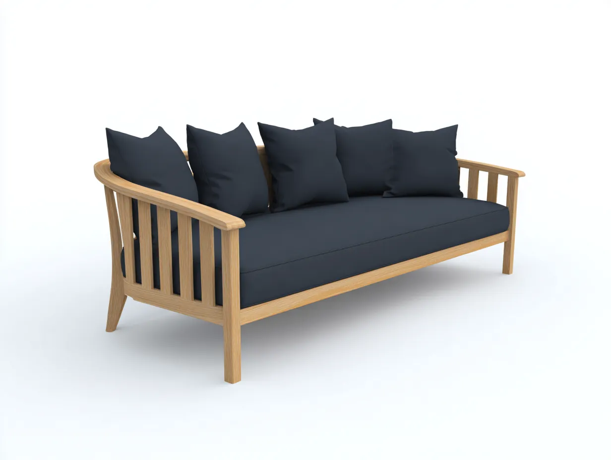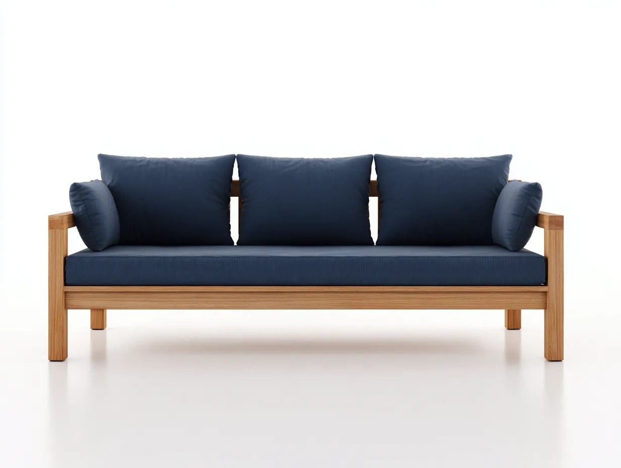 Sofá exterior de 3 plazas 188x77x79 cm - azul marino y madera clara - para jardín y terraza - diseño rectilíneo