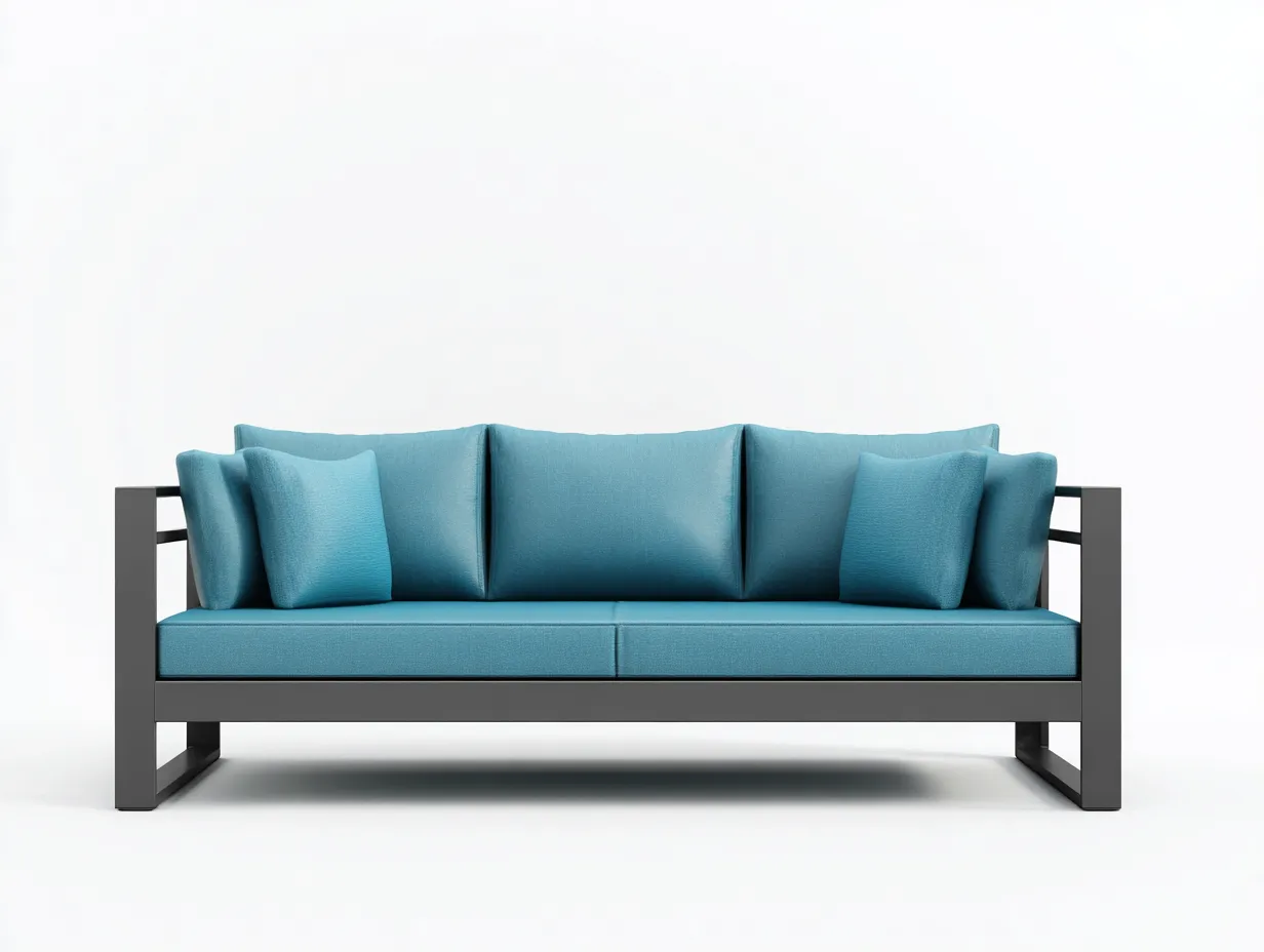 Sofá de terraza de 3 plazas 178x76x80 cm - azul turquesa y gris antracita - para jardín y porche - estilo moderno
