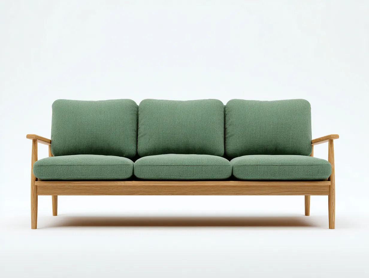 Sofá exterior de 3 plazas 182x76x81 cm - verde musgo y madera natural - para terraza y jardín - diseño depurado